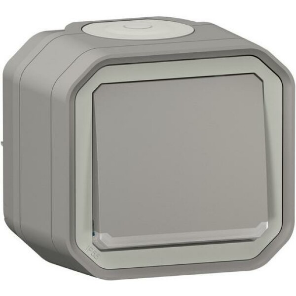 Plexo New Feuchtraum-Aufputz Wechselschalter beleuchtet 10 AX, Steckklemmen (SL), IP 55, IK 08, in der Farbe: Grau.
