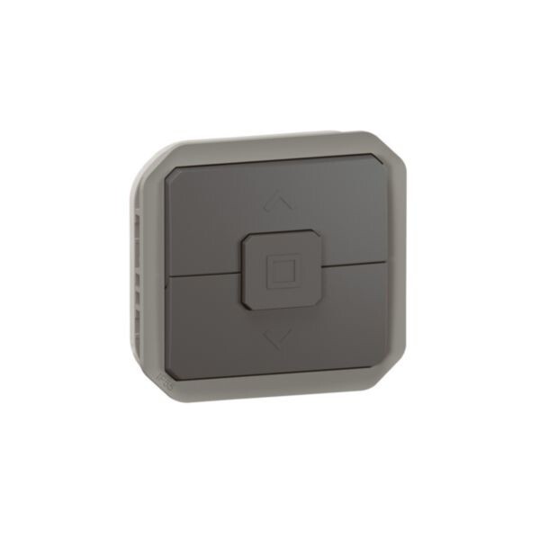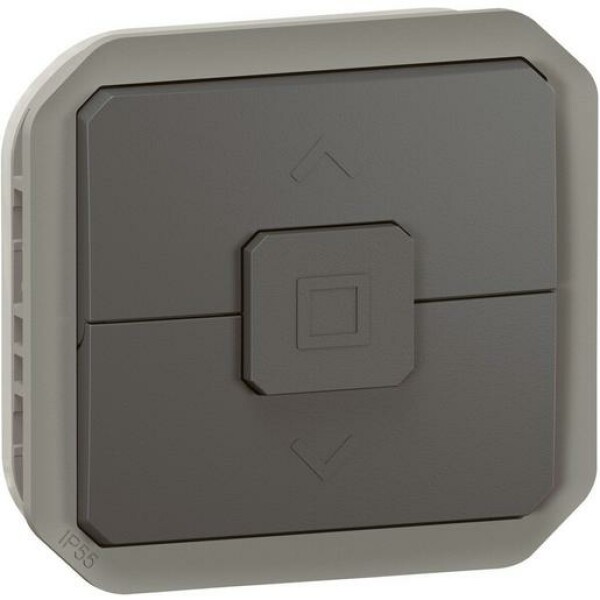 Plexo New Einsatz Rollladenschalter mit elektrischer und mechanischer Verriegelung 6 AX - 250 V - 500 W max., in der Farbe: Anthrazit. Einsätze müssen in einem Tragring (Unterputzrahmen ) oder einem Aufputzgehäuse installiert werden.
