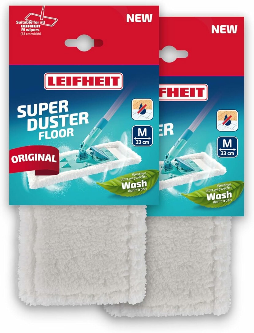 Lieferumfang – Leifheit Staubbezug SUPERDUSTER Floor M 2er Set, Ersatzbezug Staubwischer, waschbar, für alle Hartböden, Artikelnummer: 55387