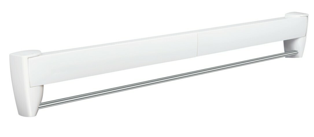 Egal ob im Bad oder auf dem Balkon – der äußerst platzsparende, zusammenklappbare Wandwäschetrockner Telegant 36 Protect Plus bietet auch auf kleinstem Raum eine optimale Kombi-Lösung für die tägliche Wäschepflege. Im geschlossenen Zustand besticht der Wäschetrockner zur Wandmontage mit seinem hochwertigen und formschönen Design. Auf der Vorderseite befindet sich passend dazu ein praktischer und eleganter Handtuchhalter aus Aluminium in der Breite von 60 cm. Im ausgeklappten Zustand bieten die insgesamt fünf Trockenstangen des Wandwäschetrockners 3,60 Meter Platz für viele Wäschestücke. Die Trockenlänge des Leifheit-Wandwäschetrockners reicht aus, um beispielsweise Duschtücher oder auch Pullover schnell und einfach an der Luft zu trocknen. Mitgeliefert wird auch das benötigte Material, um den Wandtrockner direkt zu installieren. Dadurch kann er nach dem Kauf ohne Umwege direkt in Betrieb genommen werden.