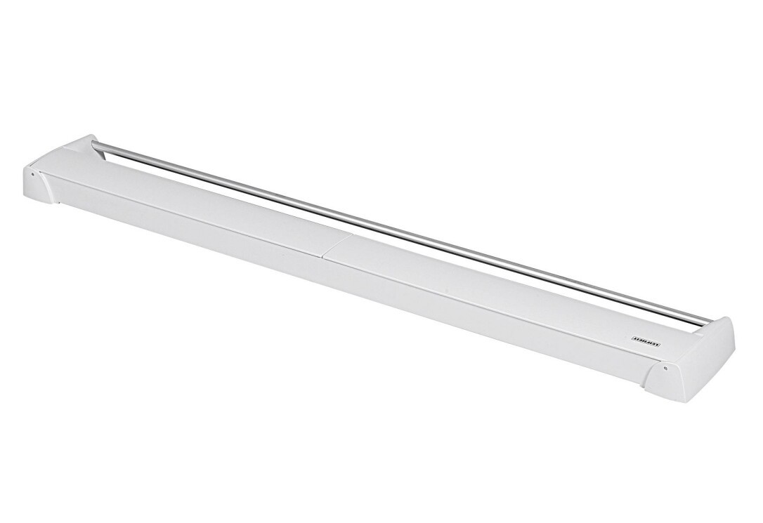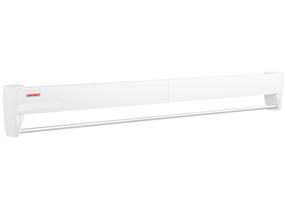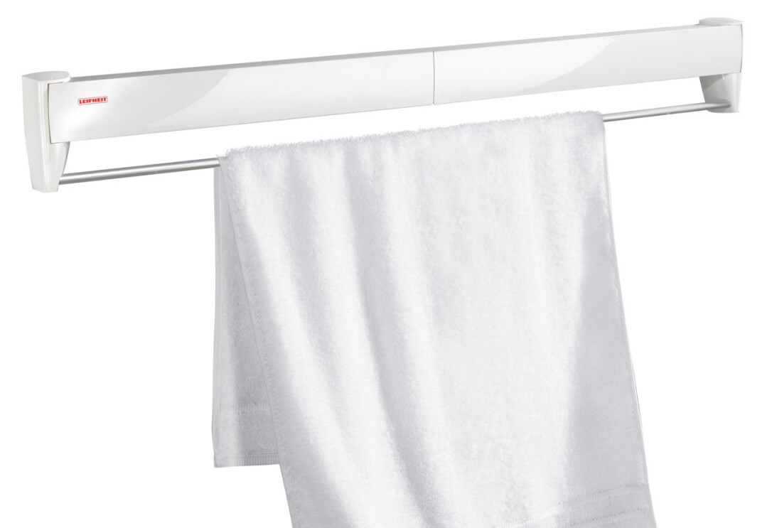 Kleine Räume wie das Badezimmer bieten kaum Platz für einen großen Wäscheständer? Dann ist der ausziehbare Wandwäschetrockner Telegant 81 Protect Plus von Leifheit die richtige Wahl. Mit den mitgelieferten Befestigungsmaterialien lässt sich der Wäschetrockner direkt an der Wand montieren. Zusammengeklappt überzeugt er mit seiner zeitlosen Optik und einer integrierten verchromten Handtuchstange. Ausgeklappt entfalten sich acht Trockenstäbe mit je 90 cm Breite. Diese bieten Trockenkapazität für eine ganze Waschmaschinenladung. Der Leifheit Wäschetrockner für die Wand verfügt über eine hohe Tragfähigkeit – so können selbst schwere Duschtücher einfach getrocknet werden.