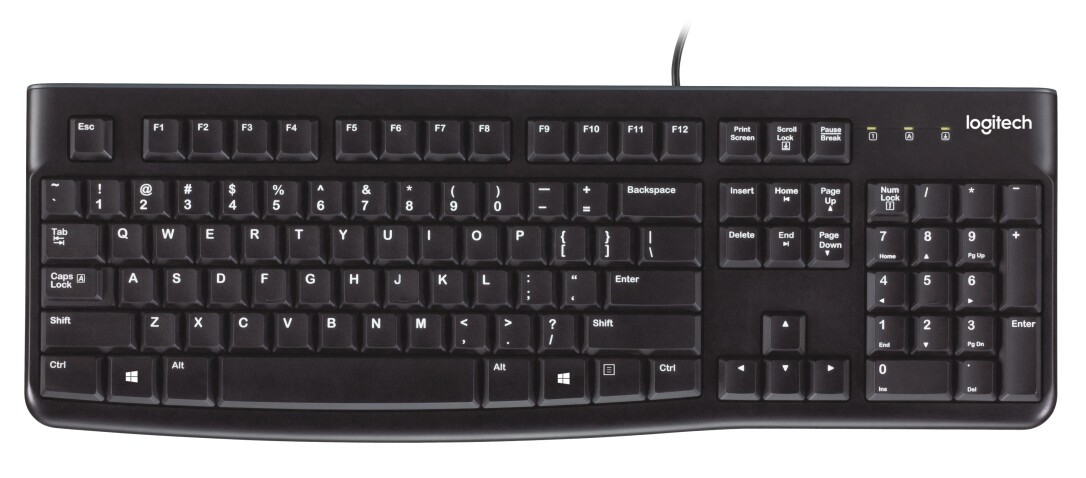 Logitech K120 Corded Keyboard - Full-size (100%) - Wired - USB - QWERTY - Black