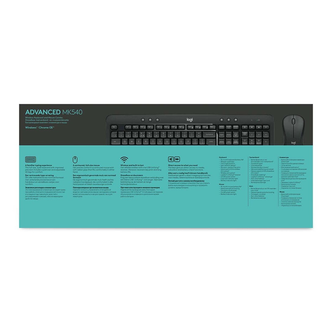 MK540 Advanced is an instantly familiar wireless keyboard and mouse combo built for precision, comfort and reliability. The full-size keyboard features a familiar key shape, size, and feeling – optimized for precision and noise reduction.