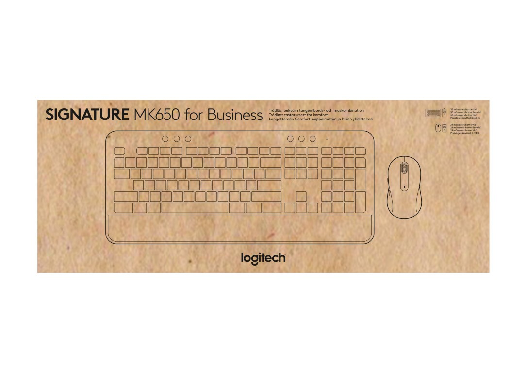 Logitech Signature MK650 Combo For Business. Tastatur Formfaktor: Volle Größe (100%). Tastatur-Stil: Gerade. Übertragungstechnik: Kabellos, Geräteschnittstelle: Bluetooth, Tastatur-Switch: Membran Key Switch, Tastaturaufbau: QWERTZ, Tastatur - Tastenanzahl: 118. Handgelenkauflage. Empfohlene Nutzung: Büro. Produktfarbe: Graphit. Maus enthalten