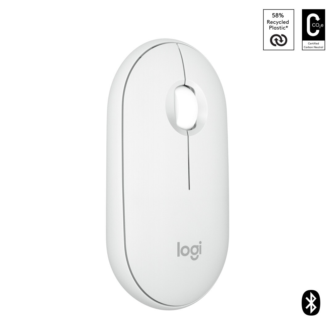 Logitech Pebble 2 M350s, Beidhändig, Optisch, RF Wireless + Bluetooth, 4000 DPI, Weiß