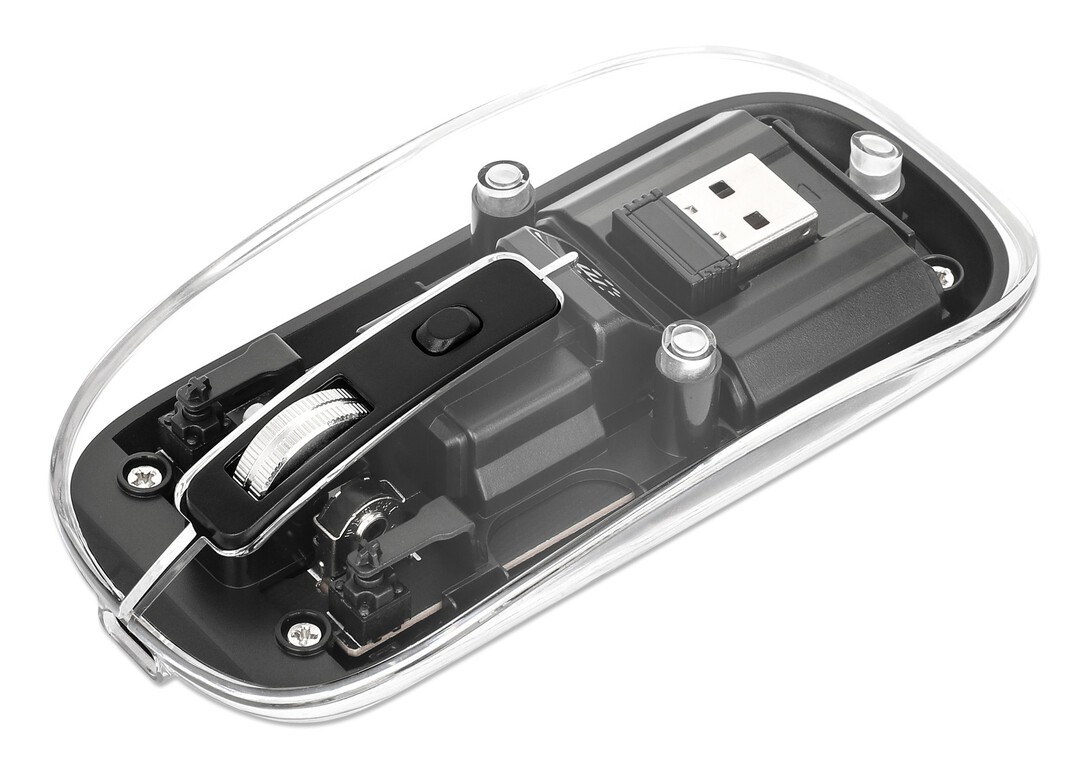 Manhattan 190268, Beidhändig, Optisch, RF Wireless, 1600 DPI, Schwarz, Transparent