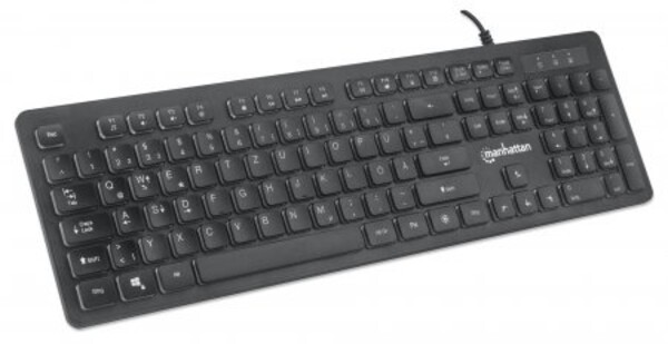 Manhattan Keyboard - Gaming - LED light - USB - 6 Hotkeys - Black - Retail Box (German layout) - Full-size (100%) - USB - RGB LED - Black