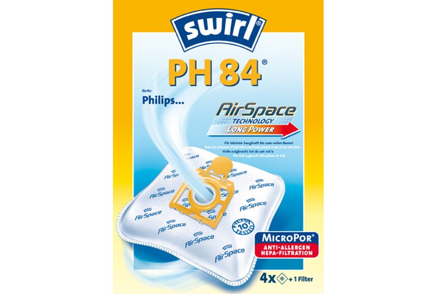 Swirl PH 84. Product colour: Orange,White, Compatibility: Philips, Nilfisk, Karstadt. Number of dust bags: 4 pc(s), Number of filters: 1 pc(s)