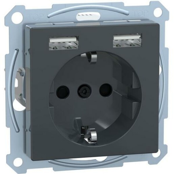 MERTEN MEG2366-0414 Schuko-Steckdose - Schuko-Steckdosen-Einsatz mit USB Ladegerät 2,4 A - anthrazit