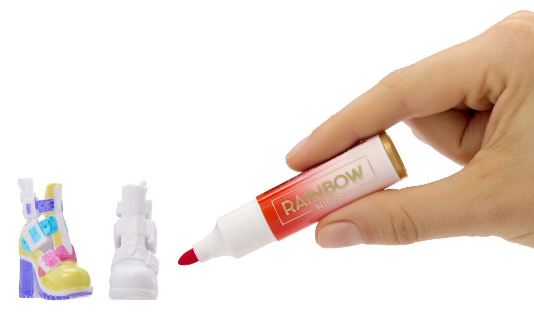 Ein neuer Charakter in einem wunderschönen weißen Outfit mit langem, weißem Haar. Mit dem innovativen Airbrush-Tool lassen sich individuelle Farbdesigns mühelos auftragen. Alternativ können die vier mitgelieferten Marker in Regenbogenfarben verwendet werden, um Kleidung, Schuhe und Haare direkt zu gestalten. Die Farben sind auswaschbar, sodass immer wieder neue Looks kreiert werden können. Eine Stickerschablone erleichtert das Auftragen von Formen.