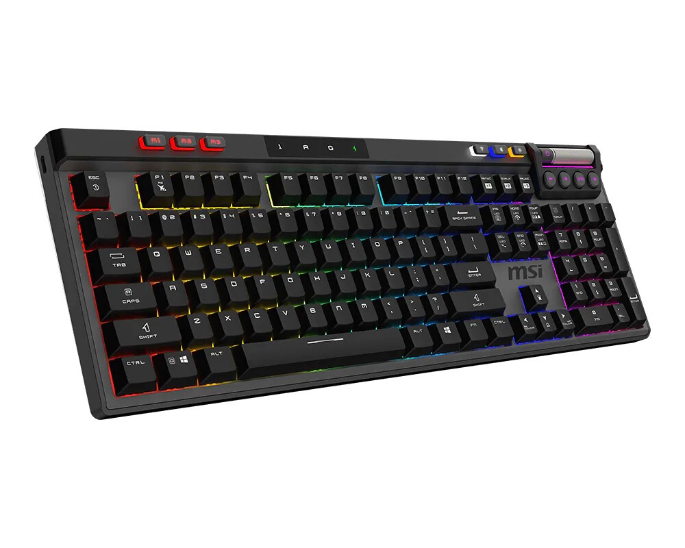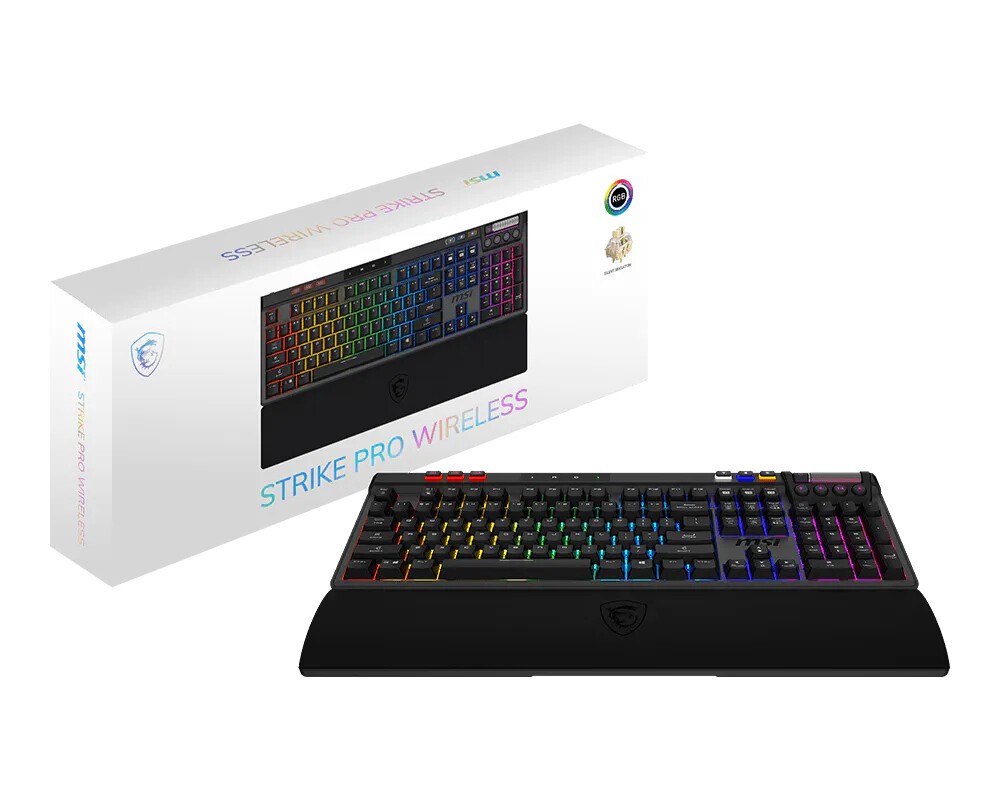 MSI STRIKE PRO WIRELESS, Kabellos, USB + Bluetooth, Mechanischer Switch, QWERTY, RGB-LED, Schwarz