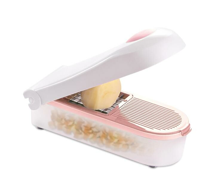 Kunststoff / Edelstahl, Inhalt: 3 Wechsel-Einsätze zum Raspeln, Hobel und Würfeln, für Gemüse, Obst und vieles mehr, mit Reinigungsgabel, spülmaschinengeeignet
