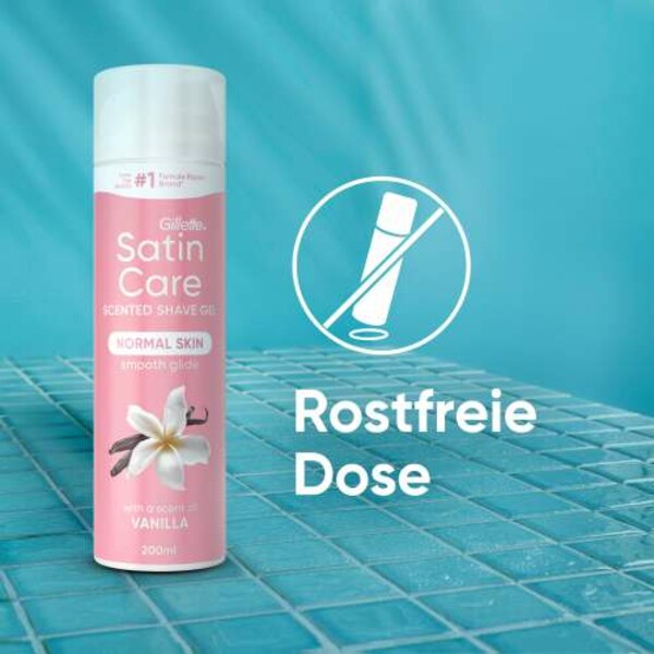 Das Satin Care Rasiergel mit Vanilleduft ist Deine ideale Lösung für eine glattere und sicherere Rasur. Der Schaum sorgt für ein sanftes Gleiten und schützt Deine Haut vor Schnitten und Irritationen. Genieße nach jeder Rasur ultraweiche, samtige Haut, angereichert mit einem Hauch von Vanille. Speziell entwickelt, um die Haut zu pflegen und zu schützen, hilft die feuchtigkeitsspendende Formel, Hauttrockenheit zu vermeiden. Dank der rostfreien Dose gehören Rostflecken in der Dusche der Vergangenheit an.