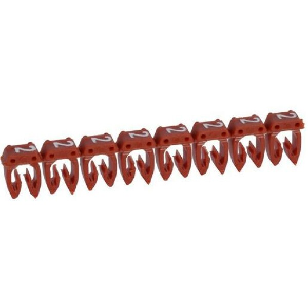Kennzeichnungssystem CAB 3, für Leiterquerschnitt 0,5 bis 1,5 mm², Ziffer: 2 (Rot), Kennzeichnung von Leitern mittels Ziffern, Buchstaben und Symbolen, zum Aufklipsen auf Leiter.