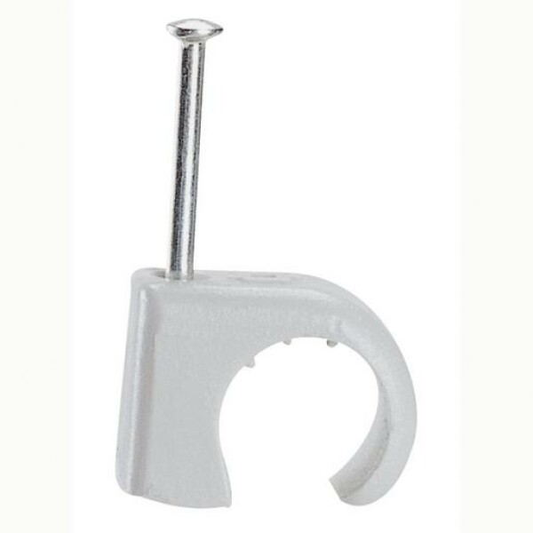 Nagelschelle aus biegsamem Material mit eingestecktem Stahlnagel für Rundkabel Ø 14-20 mm, Nagelstärke Ø: 2,5 mm, Nagellänge Ø: 40 mm, Farbe: grau.