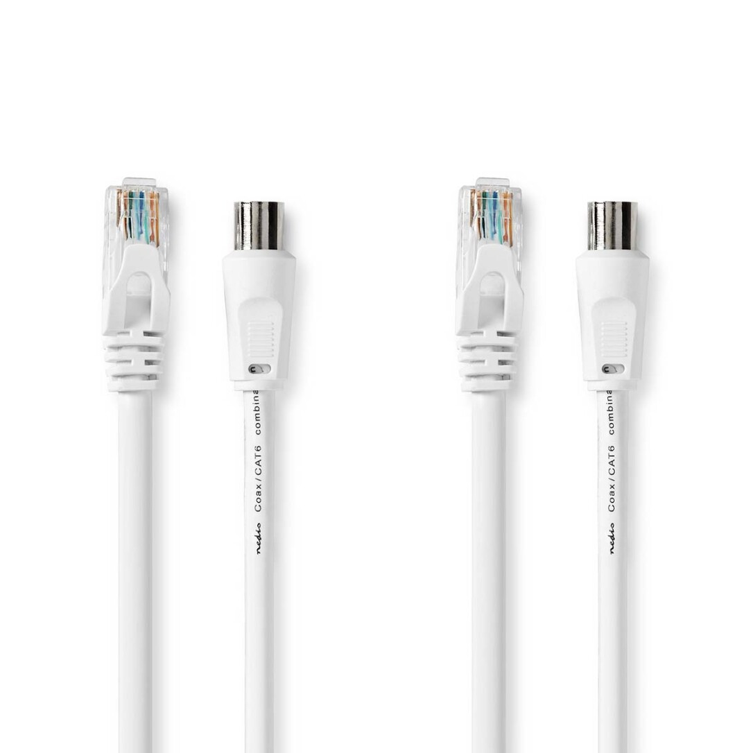 Nedis Coax & Cat6 Kombikabel / IEC (Coax) Stecker / RJ45 Stecker / IEC (Coax) Buchse / RJ45 Stecker / Vernickelt / RG58 / 75 Ohm / Doppelt geschirmt / 3.00 m / Rund / PVC / Weiss / Label
