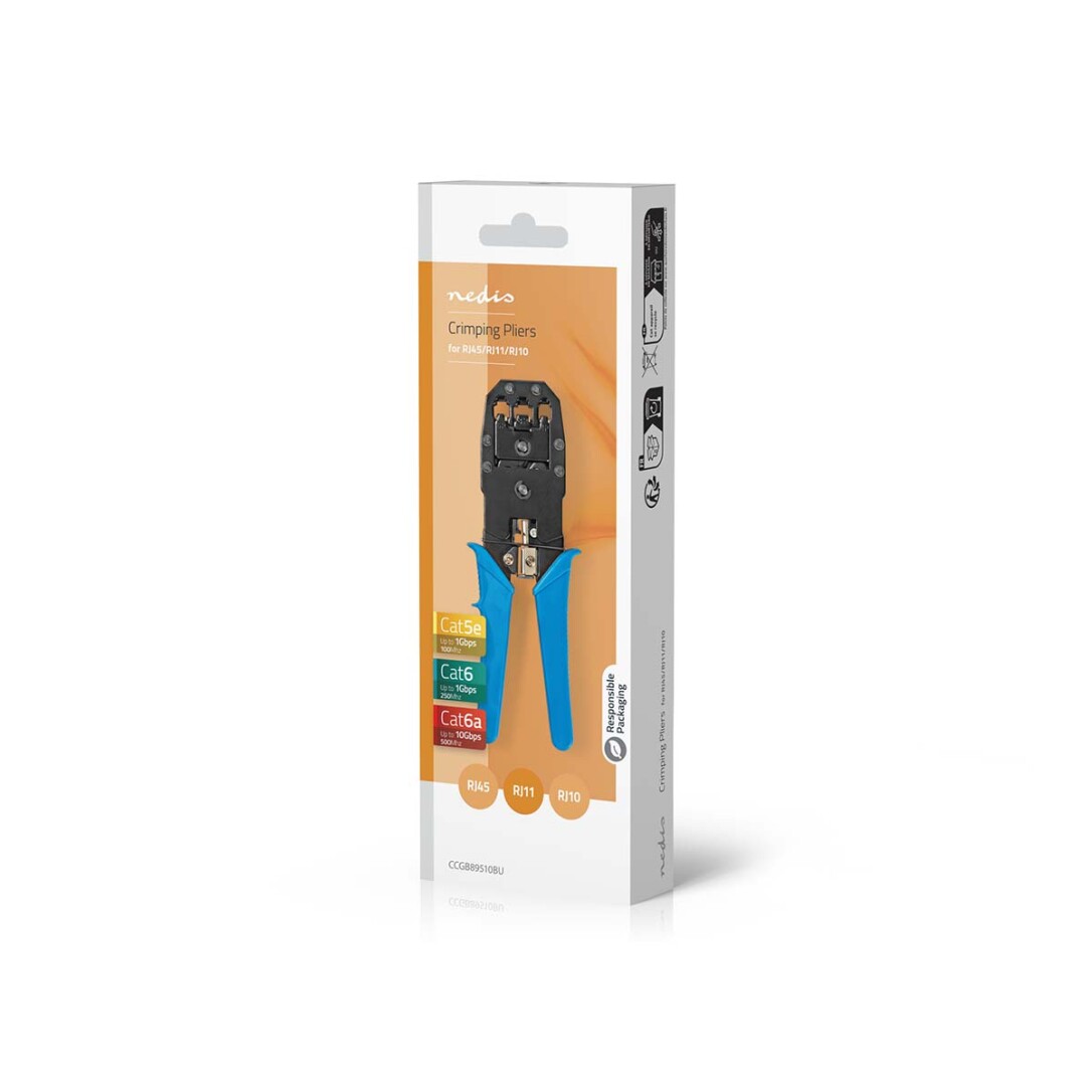 Nedis Crimp pliers / CAT5 / CAT5e / CAT6 / CAT6a / RJ10 / RJ11 / Abziehen / Schneiden / Zange / ABS / Stahl / Blau