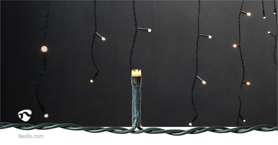These Nedis decorative LED icicle lights bring 9 metre of atmospheric warm white light to your seasonal decoration. Perfect to set the festive mood either indoors or outdoors. Choose one of the 7 predefined effects with different kinds of moving patterns or the steady-on mode Use the predefined on/off timer to schedule your display and ensure that your string of lights is always on at the right time.