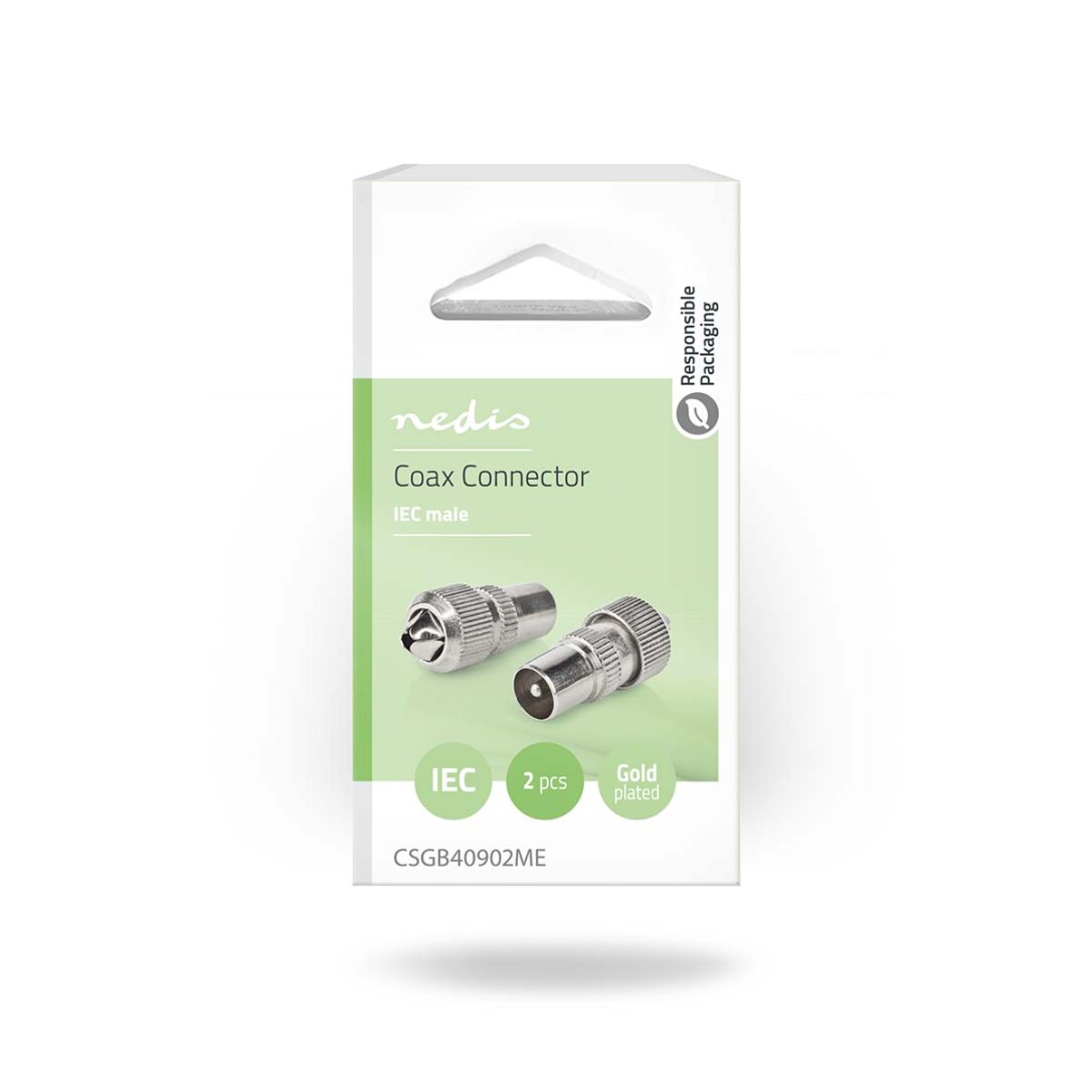 Nedis IEC (Coax) Stecker / Gerade / Stecker / Vernickelt / 75 Ohm / Schraube / Kabeleingangsdurchmesser: 7.0 mm / Metall / Silber / 2 Stück / Box