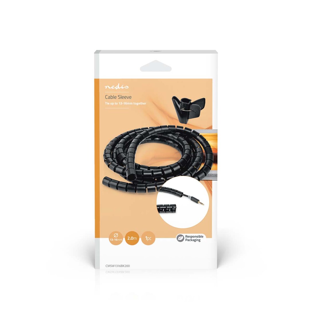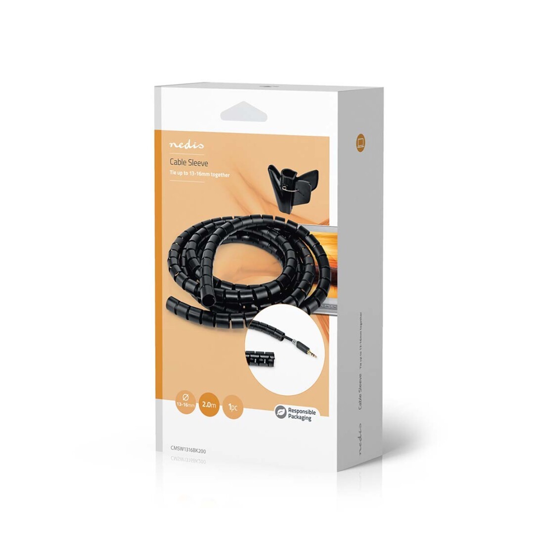 Nedis Kabelmanagement / Spiralhülse / 1 Stück / max. Kabeldicke: 16 mm / PE / Schwarz