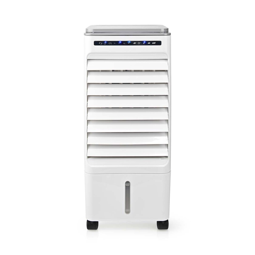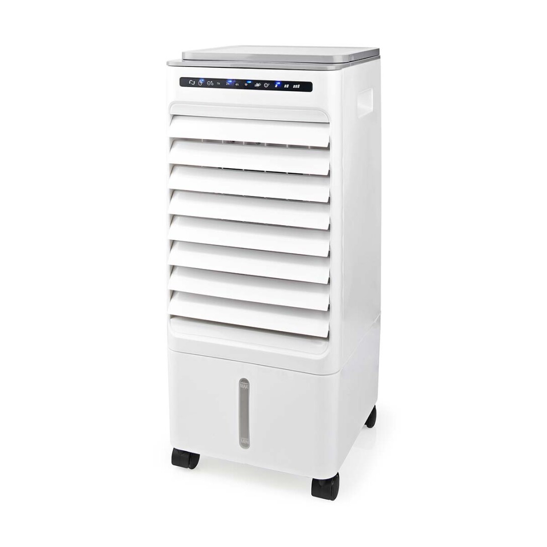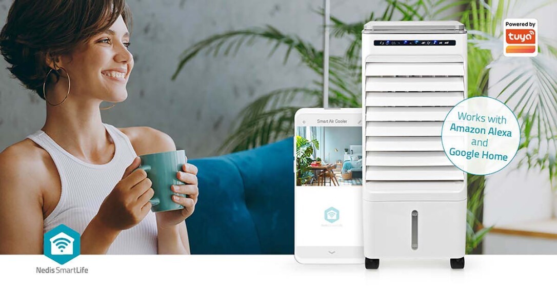Wenn Sie einen kraftvolleren und effizienteren Luftstrom benötigen als den, den ein gewöhnlicher Ventilator erzeugt, und wenn Sie kein Fenster öffnen können oder einfach keine Löcher für einen Klimaanlagen-Abluftschlauch bohren möchten, bietet dieser Luftkühler von Nedis SmartLife die perfekte Lösung.Schließen Sie den intelligenten Luftkühler an Ihr WLAN-Netzwerk an und laden Sie die Nedis SmartLife-App herunter. Sie können den Luftkühler ganz einfach aus der Ferne mit der App steuern oder die Sprachaktivierung mit Google Assistant oder Amazon Alexa nutzen. Der Luftkühler ist zudem standardmäßig mit einer Fernbedienung ausgestattet. So müssen Sie also zum Temperaturregeln keinen unnötigen Schritt mehr machen. Sie haben längere Zeit keine WLAN-Verbindung? Keine Sorge, denn Sie haben immer die Möglichkeit, den Luftkühler über ihr Bedienfeld zu steuern.Der Luftkühler funktioniert wie folgt: Er zieht trockene, heiße Luft ein, die durch ein angefeuchtetes Pad geleitet wird, dieses Pad absorbiert die Wärme, die Feuchtigkeit im Pad verdunstet, die Luft wird um ein paar Grad abgekühlt und Sie können eine belebende, erfrischende Brise genießen. Vergleichen Sie dies mit einem heißen Sommertag, den Sie auf dem Wasser verbringen: Trotz der hohen Temperaturen fühlt es sich immer noch angenehm kühl an.Die befeuchtete Luft wird in den Raum zurückgeblasen, sodass Sie nicht der trockenen Luft ausgesetzt sind, die von Klimaanlagen ausgeht.Durch die Ionisierungsfunktion wird der Staub in der Umgebung verringert und Gerüche im Raum werden beseitigt.Sehr einfaches Befüllen des Wassertanks über die Oberseite.Mit vier Eispacks, um die Kühlleistung weiter zu verbessern.