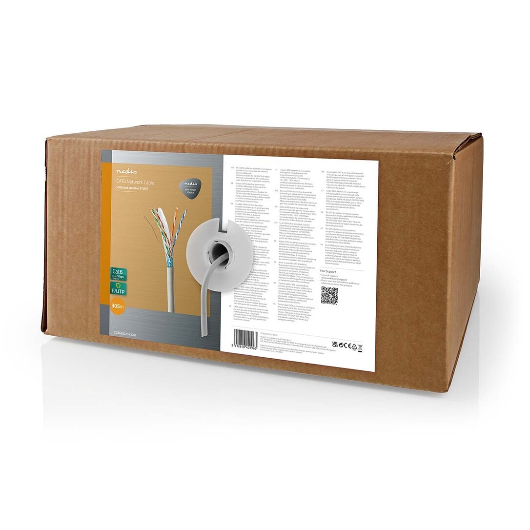Nedis Network Cable Roll / CAT6 / Solid / F/UTP / CCA / 305.00 m / Indoor / Round / PVC / Grey / Gift Box