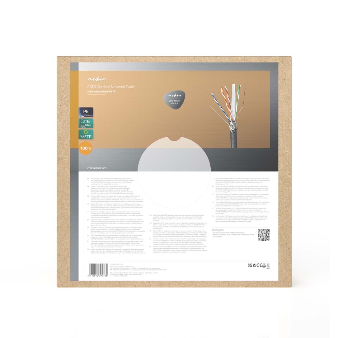 Nedis Network Cable Roll / CAT6 / Solid / S/FTP / Copper / 100,0 m / Outdoor / Round / PE / Black / Gift Box