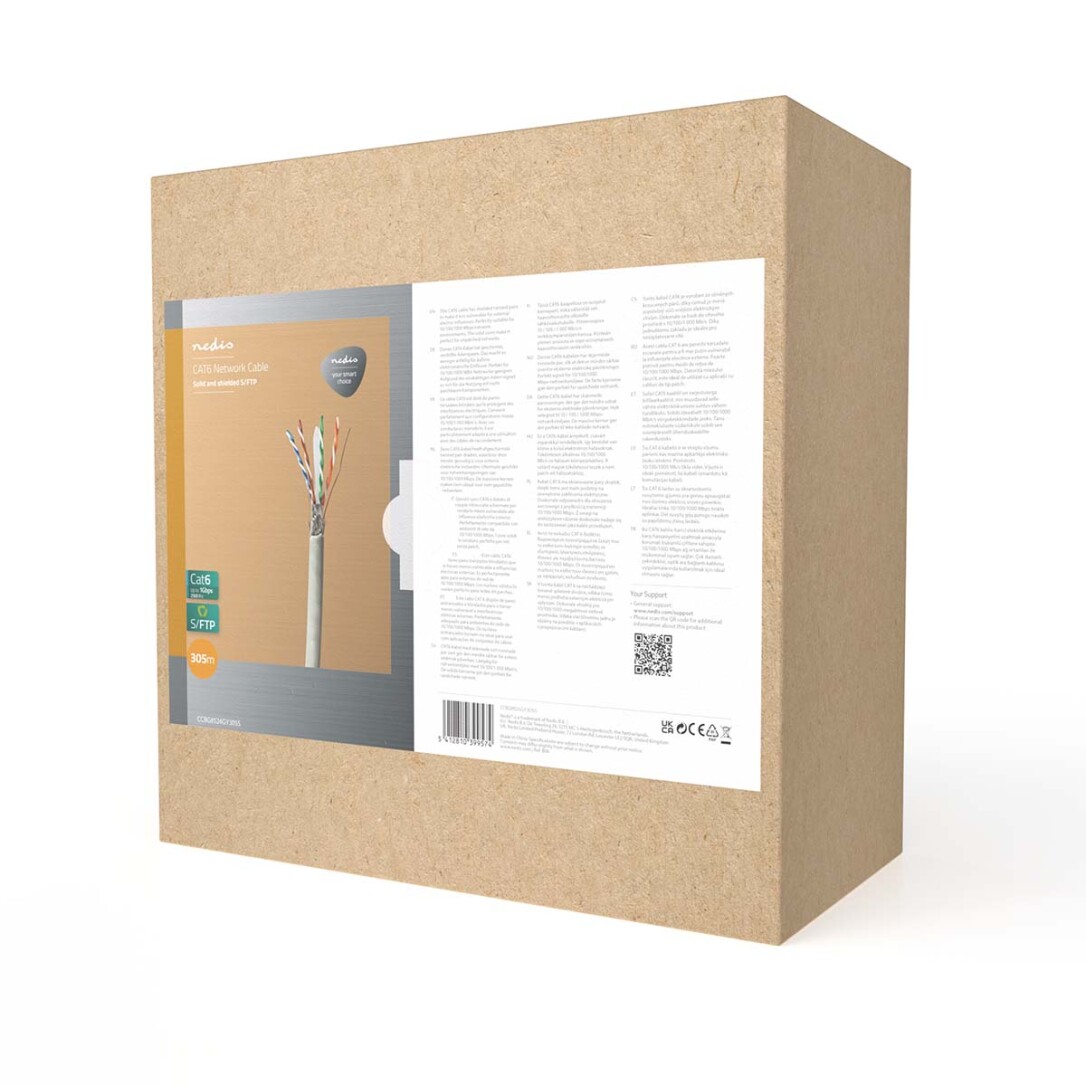 Nedis Netzwerk-Kabel Rollen / CAT7 / Solid / S/FTP / Kupfer / 305 m / Innen / Rund / LSZH / Grau / Pull Box - ausziehbar