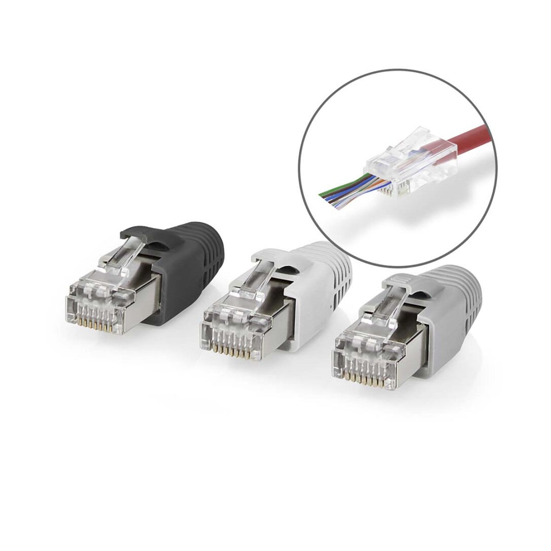 Nedis RJ45-Stecker / RJ45 Pass Through / Festes/verseiltes FTP CAT6 / Gerade / Vergoldet / 10 Stück / Polycarbonate / Grau / Schwarz / Weiss / Box