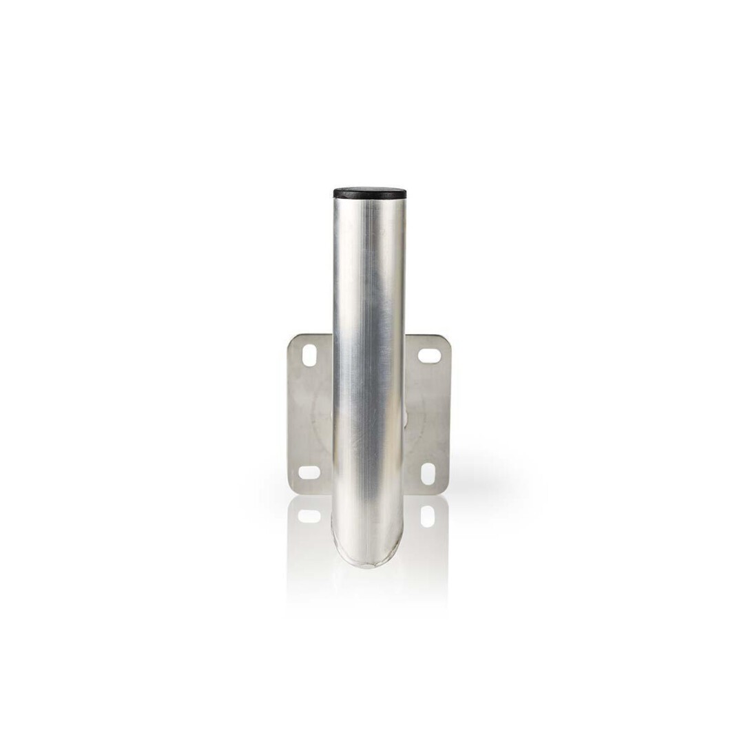 L-shaped, aluminium wall mount with a blanking cap to mount satellite dishes and/or aerials firmly to facades, walls or chimneys. Four mounting holes make sure that the wall mount stays properly secured to the surface, whilst carrying its heavy load.