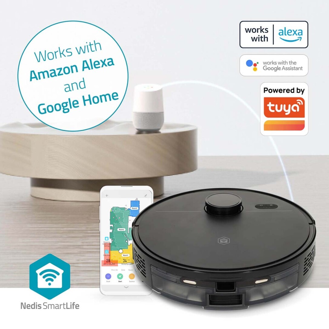 Nedis SmartLife Roboter-Staubsauger / Navigationsmethode: Laser-Navigation / Wi-Fi / Kapazität Auffangbehälter: 0.59 l / Automatisches Laden / Maximale Betriebszeit: 1.75 Std / Schwarz / Android™ / IOS