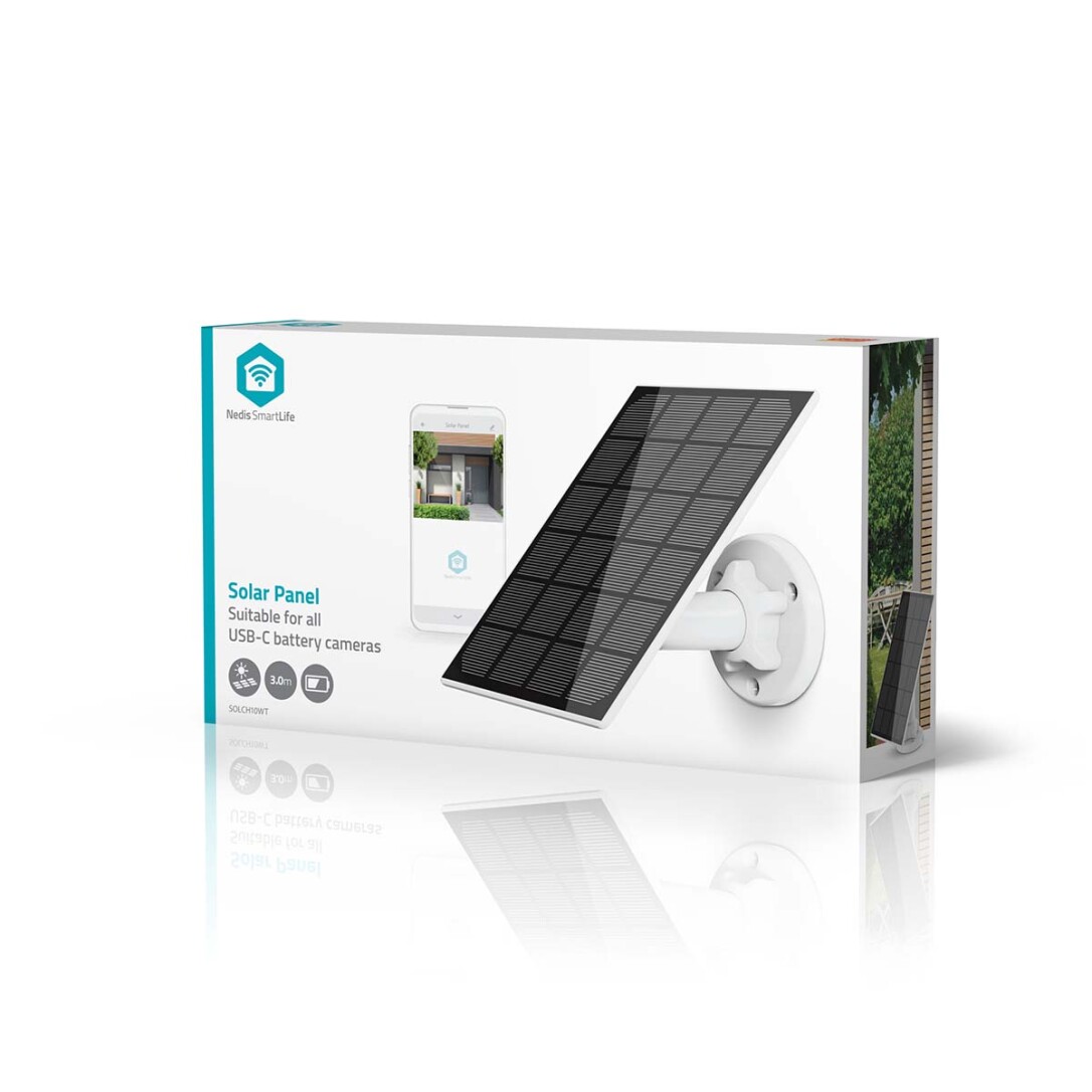 Dieses Nedis Solarpanel mit USB-C wurde entwickelt, um jede Nedis SmartLife Akku-Kamera aufzuladen. So können Sie Ihre Kamera überall innerhalb der Wi-Fi-Reichweite installieren.Hohe Flexibilität wird durch das extra lange Kabel, das kleine Design und die flexible Halterung gewährleistet. Das extralange Kabel bietet Ihnen die Möglichkeit, die Kamera im Schatten zu platzieren und das Panel innerhalb von 3 Metern an einem sonnigen Ort zu installieren. Das Solarpanel produziert nur bei direkter Sonneneinstrahlung Strom, also nicht bei bewölktem Wetter. Aber die langlebige Batterie der Kamera sorgt dafür, dass dies keine Probleme verursacht. Mit etwas Sonne ab und zu wird sie also genug aufgeladen, um weiterzulaufen.
