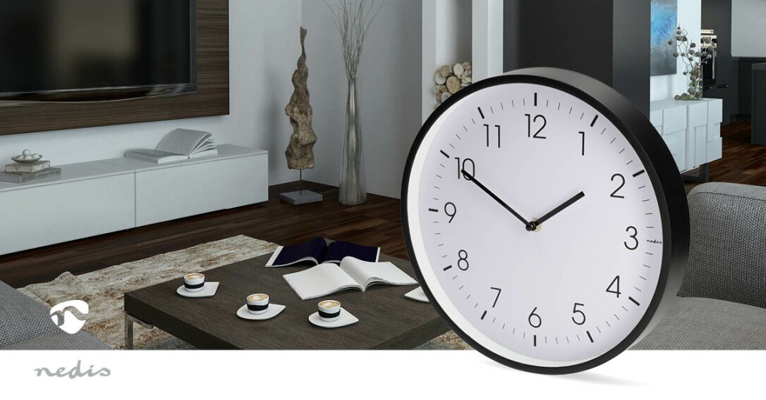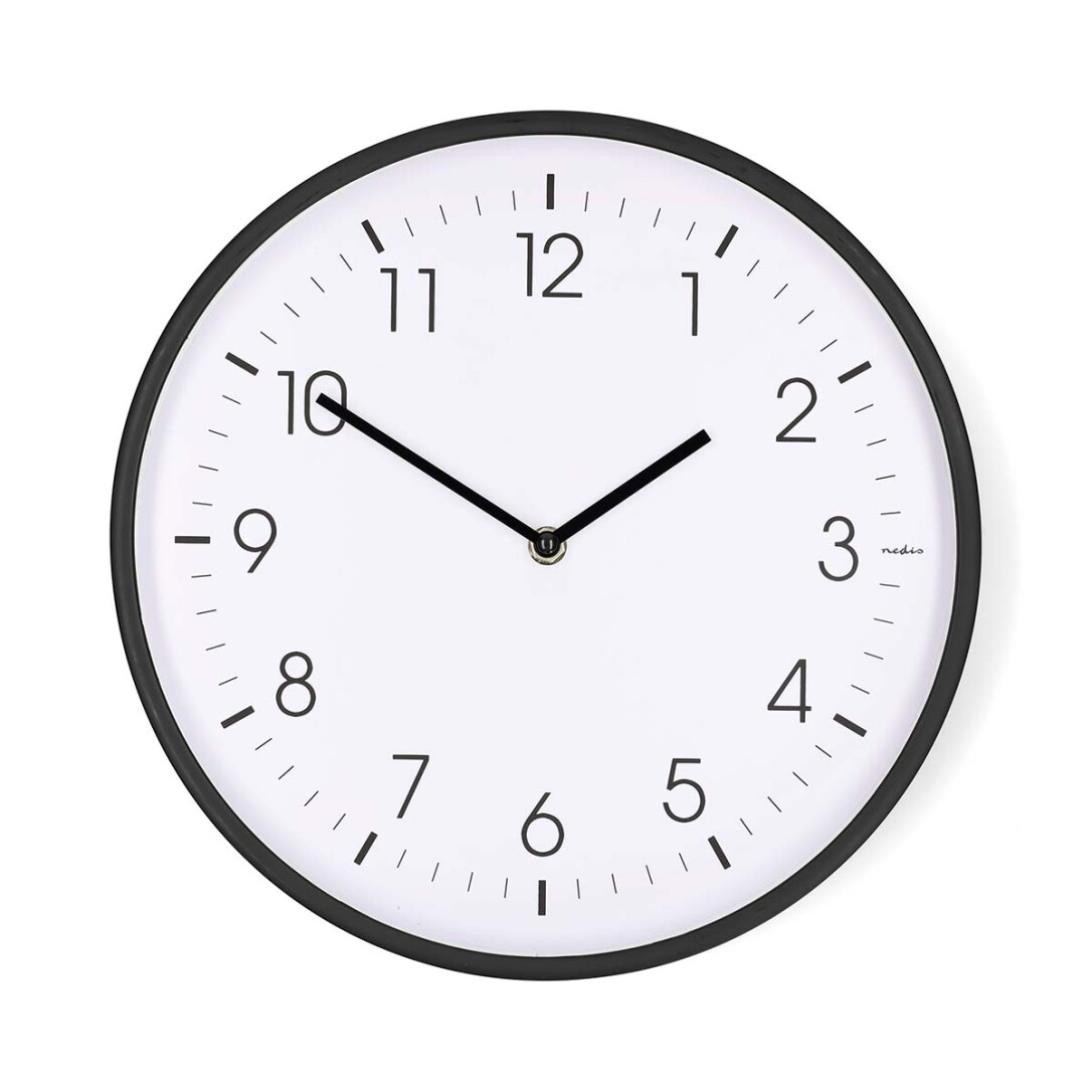 Nedis Wanduhr / Durchmesser: 300 mm / Kunststoff / Leise Bewegung / Schwarz