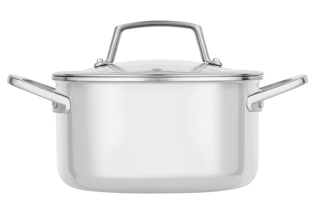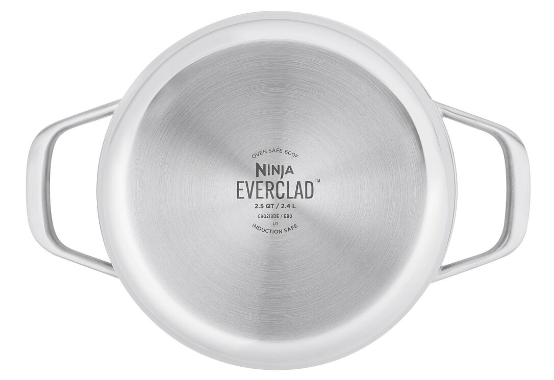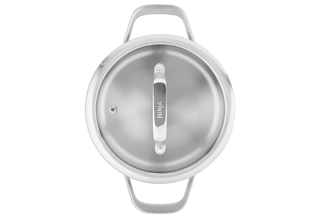 NINJA Bratentopf "EverClad" Ø 18 cm, H 15,2 cm, aus Edelstahl mit Glasdeckel. Fassungsvermögen 2,3 l. Für alle Herdarten geeignet, kompatibel mit Ø 15 cm Induktionsring. Ofenfest bis 315 °C, spülmaschinengeeignet.