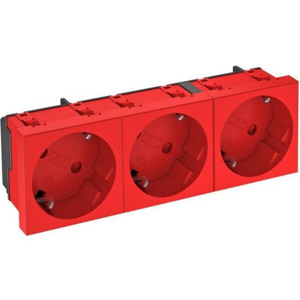 Schutzkontakt-Steckdose 3-fach 33°, mit erhöhtem Berührungsschutz, mit Steckklemmen, 2polig, 16 A, 250 V~, mit Verbindungsklemmen nach IEC 60884-1. Zur Installation in Rapid 45 Kanälen, Geräteeinbaukanälen, Installationssäulen, UnterflurSystemen und Deskboxen.
