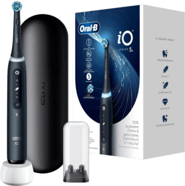 Oral-B iO 5 iO5 Elektrische Zahnbürste/Electric Toothbrush, Magnet-Technologie, 5 Putzmodi für Zahnpflege, LED-Anzeige & Reiseetui, Designed by Braun, matt black