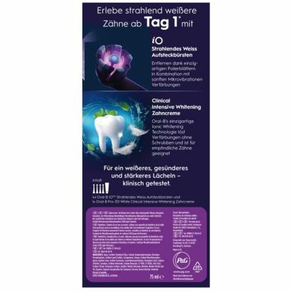 Oral-B Whitening Bundle 4io Aufsteckbürsten + Zahnpasta