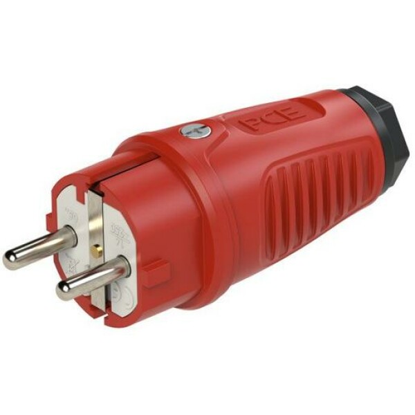 Schutzkontaktstecker Serie TAURUS2 - Gummi Farbe (Haube/Ring): rot/schwarz, Material (Haube/Kontakträger): TPE/PA6, Schutzkontaktsystem: österr./deutsch 16A / 250V AC / 3p (2P+E), Schutzart: IP54.