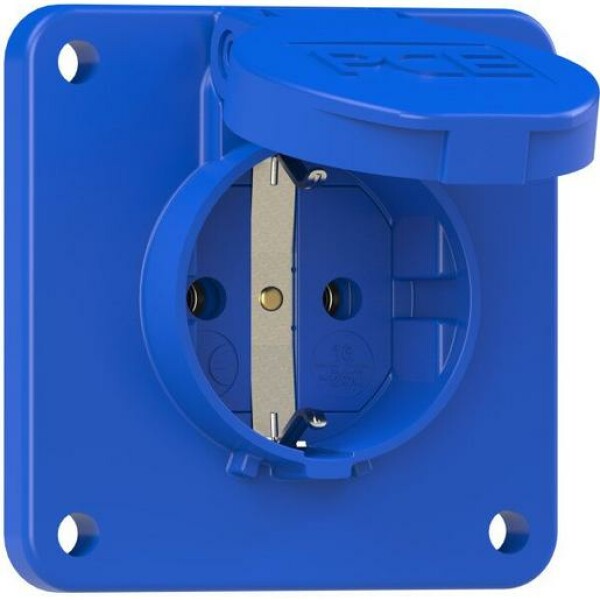Schutzkontaktsteckdose nach österr./deutsch. System 16A 3polig 250V IP54 P-Nova (blau, rückwärtiger Anschluss, Flansch 75x75), mit Schraubkontakt, Gehäusematerial: PA6, Kontakte: vernickelte Kontakte.