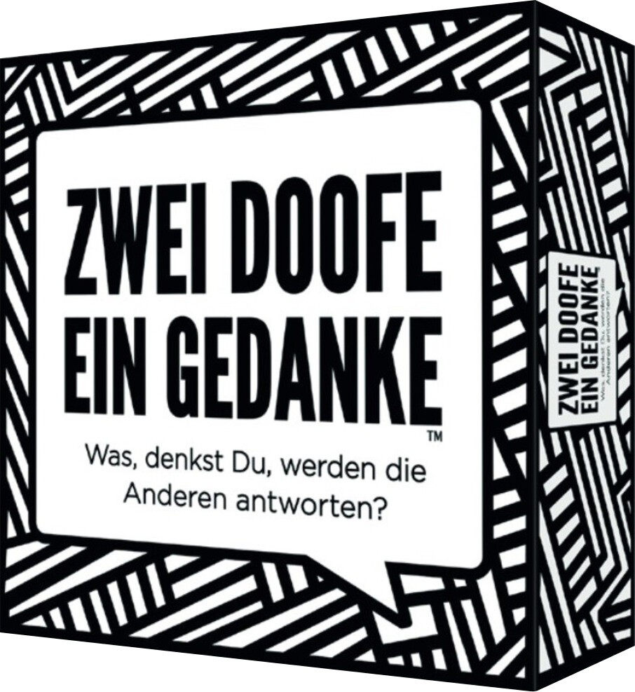 Ein Tier im Zoo? Ein Song von ABBA? Ein TV-Moderator? Eine Biermarke? Ein Körperteil? Wie, denkst Du, wird die Antwort der Anderen ausfallen? Zwei Doofe ein Gedanke ist ein mitreißendes Spiel mit hohem Funfaktor. Dabei muss jeder Spieler versuchen dieselbe Antwort abzugeben wie die anderen Spieler. Je mehr Spieler so wie Du geantwortet haben, desto mehr Punkte erhältst Du.