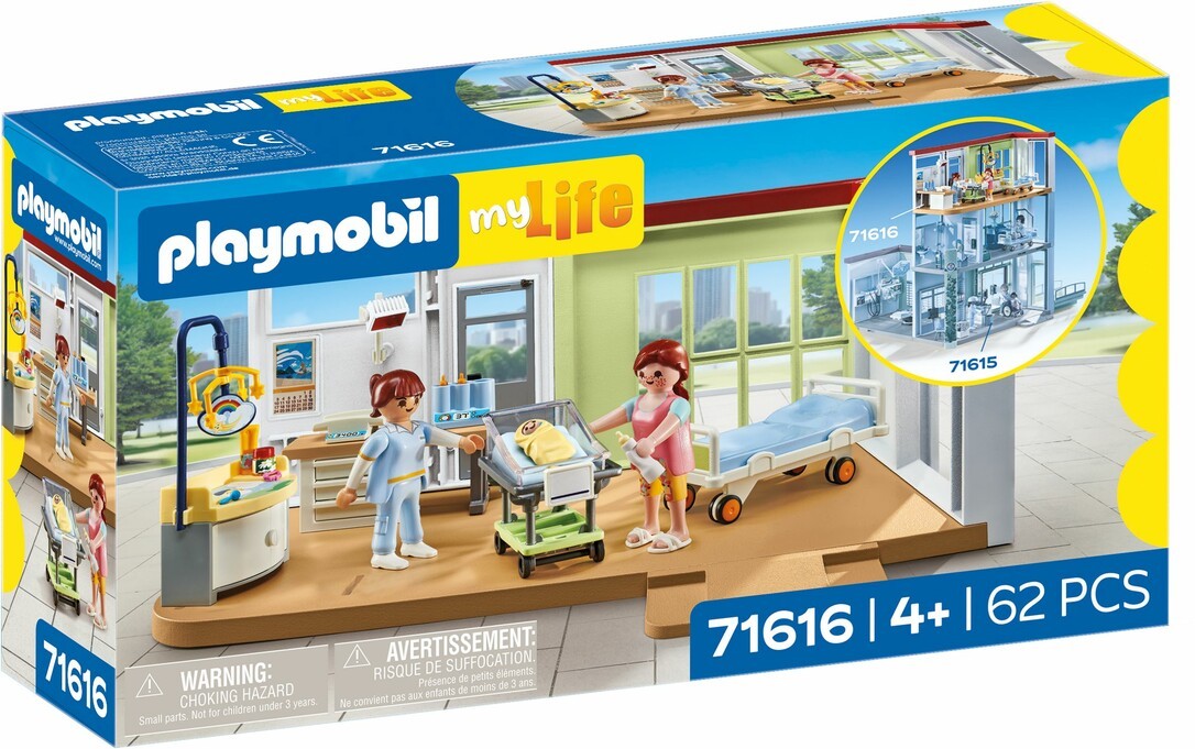 In der Wochenbettstation ist für das Wohl von Mutter und Kind bestens gesorgt. Auf dem Schild am Babybett kann der Name des jüngsten Familienmitglieds eingetragen werden und um das Gewicht des Kindes zu prüfen steht eine Waage bereit. Mit Wickeltisch, Wärmelampe, Mobile, Milchflaschen für das Baby und vielen weiteren Accessoires. Kann modular an das Moderne Krankenhaus (71615) angebaut werden.