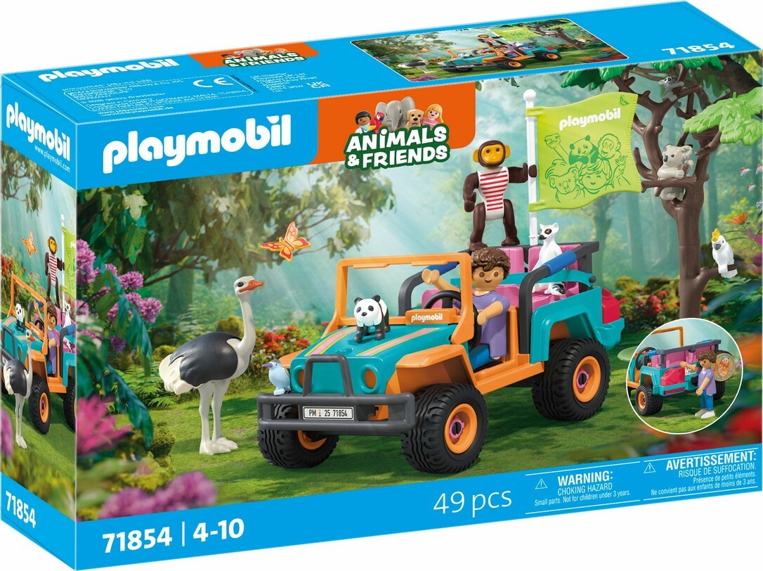 Animals on the road!? Die Tierfreunde besitzen auch ein buntes Auto, in dem jedes Tier seinen Platz für eine abenteuerlustige Fahrt findet. Der kleine Pandabär und der Ringelschwanz-Lemur haben es sich auf dem Rücksitz bequem gemacht. Der Strauß wartet schon ungeduldig auf seine Freunde und die Koalas sitzen zusammen mit dem Kakadu unter einem schattigen Blätterdach im Baum. Die tierischen Freunde können es kaum erwarten, gemeinsam mit dir auf Fahrt durch die Animals & Friends Welt zu gehen. Steig ein und habt zusammen viel Spaß!