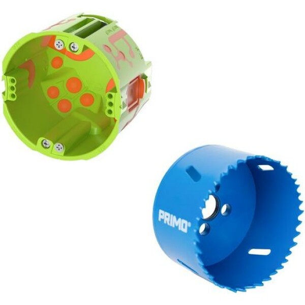Das Qnect HWD-Set-1 besteht aus: 200 x Qnect Hohlwand Geräte-V-Dose 62 mm (P201-01) und 1 x Lochsäge 74 mm (P797-74).