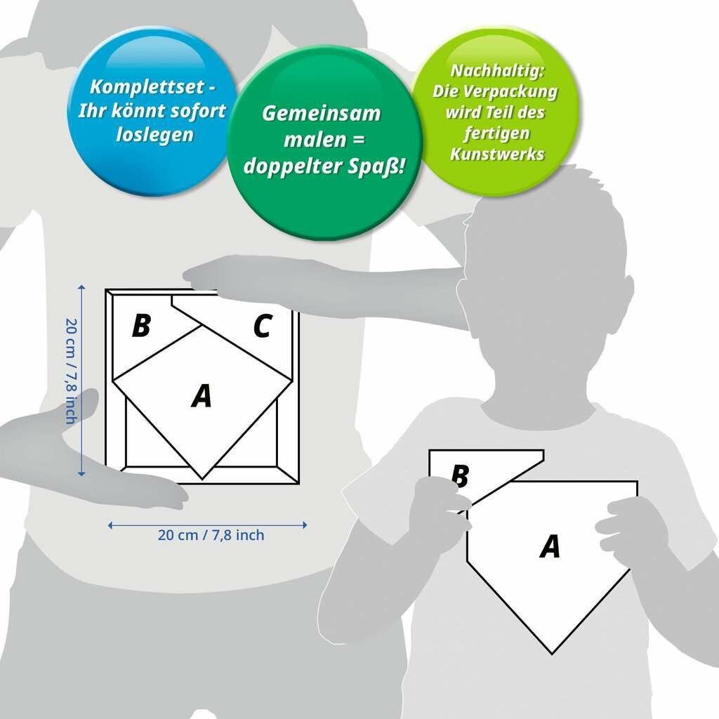 Do it together: CreArt-Malen nach Zahlen für große und kleine Künstler ab 7 Jahren, die gemeinsam malen wollen! Es eignet sich hervorragend für Malen nach Zahlen-Fans mit unterschiedlichen Fähigkeiten für ein gemeinschaftliches Malerlebnis. Eine große und zwei kleine Maltafeln, mit farbigen Motivlinien, sind nummeriert und werden mit den fertig gemischten Acrylfarben und Pinseln ausgemalt. Zusammengesetzt ergeben sie ein Deko-Kunstwerk, das für ein Erfolgserlebnis der ganzen Familie sorgt. - An die Pinsel, fertig, los! Mit unseren Komplett-Sets zum Erfolgserlebnis für die ganze Familie - Zwei Holzpinsel in verschiedenen Stärken machen das Ausmalen flexibel - Die praktische Verpackung ergibt mit den drei zusammengesetzten Maltafeln ein buntes Dekoelement - Beim Ausmalen des Motivs Do it together: Tiger verbunden fühlen! So einfach war zusammen malen noch nie! - Das Motiv Do it together: Tiger ist auch für Malen nach Zahlen Einsteigerinnen & Einsteiger geeignet