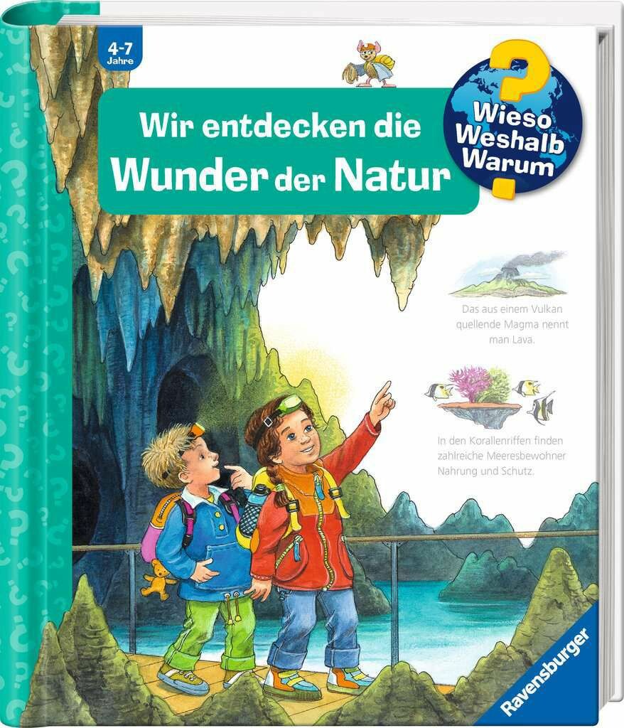 Wunder über Wunder: In diesem Buch begeben sich kleine Entdecker auf eine Expedition zu den faszinierendsten Naturschauspielen unserer Erde. Eindrucksvolle Klappen eröffnen den Blick in geheimnisvolle Tropfsteinhöhlen und auf schwindelerregende Berggipfel. Wo speien Vulkane Magma? Was ist ein Geysir? Wie ist der Grand Canyon entstanden? Und wie sieht ein Korallenriff aus? Von der Sahara über den Regenwald bis hin zur Eislandschaft der Antarktis zeigt das Buch einzigartige Orte mitsamt den dort heimischen Tieren und Pflanzen. Kinder können so zahlreiche Wunder der Natur und Naturschauspiele aus nächster Nähe bestaunen.Wieso? Weshalb? Warum?Die Sachbuchreihe für Kinder von 47 JahrenJeden Tag entdecken Kinder etwas Neues da kommen viele Fragen auf. Warum sind die Dinosaurier ausgestorben? Wo ist die Sonne in der Nacht? Wozu brauchen wir das Blut? Die beliebte Sachbuchreihe Wieso? Weshalb? Warum? gibt Kindern Antworten auf Augenhöhe. Dabei werden die unterschiedlichsten Themen aus der Alltags- und Interessenswelt der Kinder altersgerecht und mit viel Liebe zum Detail unter die Lupe genommen.Detailreiche Bilder, verständliche Sachtexte und überraschende Klappen, die Bewegungen oder Abläufe veranschaulichen und hinter die Dinge blicken lassen, ermöglichen Kindern, sich ihre Themen selbst zu erschließen. Der Spaß am eigenhändigen Entdecken, die liebevolle Umsetzung und die qualitativ hochwertige Ausstattung garantieren langanhaltende Freude an jedem einzelnen Buch.