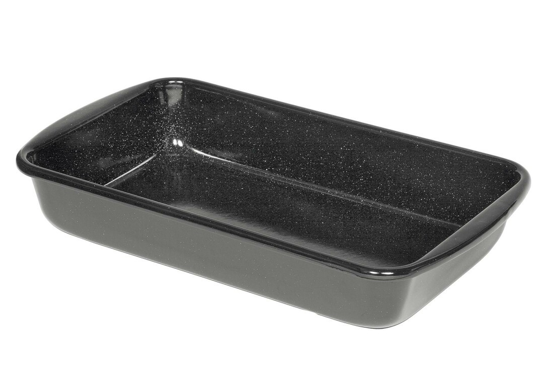 Die schöne Brat- und Backform aus Emaille besitzt eine extra große schnitt- und kratzfeste Oberfläche. Sie hat eine optimale Wärmeleitung und dementsprechend ein tolles Bratergebnis. Für alle Herdarten geeignet, auch für Induktion, für Nickelallergiker empfohlen. (LxBxH): 36x21,5x6 cm