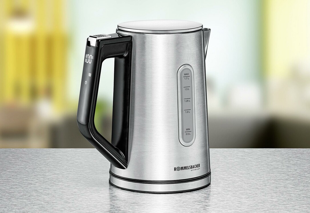 Der WK 3000 ist ein hochwertiger Wasserkocher aus der ROMMELSBACHER Sunny Frühstücksserie. Mit seinem zeitlos geradlinigen Design erfüllt er vielseitige Aufgaben in jeder Küche. Kochendes Wasser zum Brühen von Tee, Heißwasser für Instantgerichte oder warmes Wasser für Babynahrung – alles wird schnell und temperaturgenau erledigt. Dieses stilvolle Gerät überzeugt in Optik, Haptik und Funktionalität. Viel Power bis 3.000 Watt bringen das Wasser sekundenschnell auf Wunschtemperatur. Die beidseitigen Wasserstandsanzeigen bieten guten Überblick. Das äußerst nutzerfreundliche Bedienkonzept des Wasserkochers überzeugt im täglichen Gebrauch: Direkt am Griff befinden sich die 1-Tasten Steuerung sowie ein LED-Display. Sehr praktisch ist die Schnellstart-Funktion, die mit nur einem Tastendruck schnell kochendes Wasser liefert. Die Temperatur wird präzise elektronisch geregelt, eine automatische Warmhaltefunktion hält das Wasser auf dem gewünschten Level. Die große Einfüllöffnung, der herausnehmbare Edelstahlfilter und ein geschlossener Innenboden machen die Reinigung einfach. Sicherheit wird beim WK 3000 groß geschrieben, der wärmeisolierte Griff, die Kochstoppautomatik sowie ein Trockengehschutz geben ein gutes Gefühl bei der täglichen Nutzung. Dieser formschöne Wasserkocher aus dem Hause ROMMELSBACHER ist die perfekte Kombination aus Sicherheit, Funktionalität und Stil.