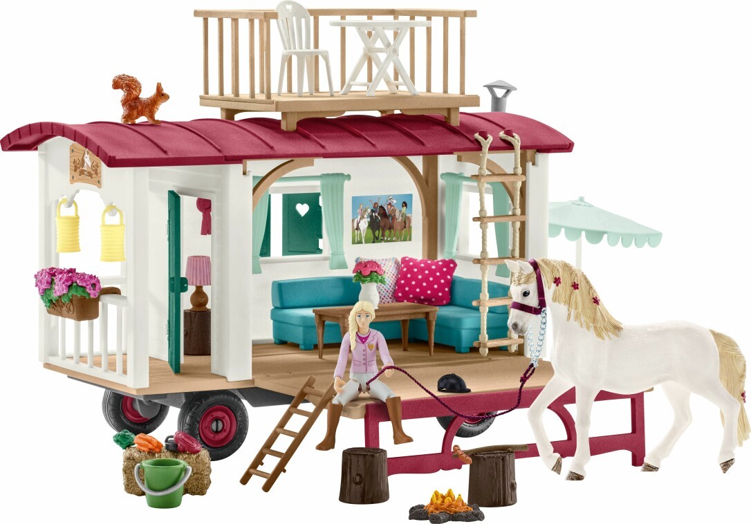 Pssst! Kichere nicht zu laut … schließlich darf niemand wissen, wo sich das Horse Club Hauptquartier befindet! Der Wohnwagen für geheime Club-Treffen ist für Hannah, Sofia, Lisa und Sarah der perfekte Ort, um ihre Zeit gemeinsam zu verbringen …als Horse Club! Unzählige Accessoires für gemeinsamen Pferdespaß! Jetzt mit voll beweglichen Horse Club Mädchen-Figuren! Empfohlen für Kinder ab 5 Jahren.