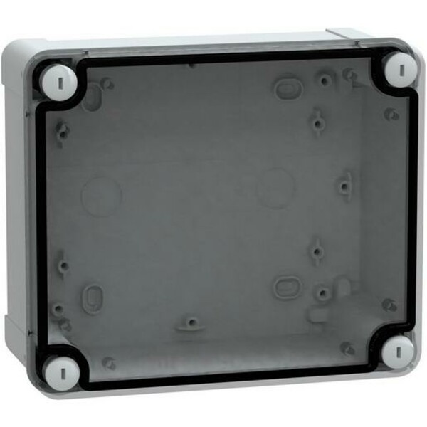 Geh. ABS IP66 IK07 RAL7035 Inn.H175W150D80Auß.H193W164D87 durchs. Abd.H20. Produktbereich: TeSys LE - Geräteanwendung: Mehrzweck - Höhe: 192 mm - Breite: 164 mm - Tiefe: 87 mm - Innenhöhe: 175 mm - Innenbreite: 150 mm - Innentiefe: 80 mm - Schrankmontage: Wandmontage - Geräteaufbau: 1 x Abdeckung, 1 x Gehäuse, 4 x Abdeckschraube - Gehäusetyp: einteilige Gussform - Typ der Frontabdeckung: niedrige transparente Abdeckung - Befestigung der Abdeckung: Kunststoffschrauben. Ihr Nutzen: Multifunktionelle Industriegehäuse! - Hohe Schutzart: IP 66. - Drei Montagevarianten. - Diverse Deckeltiefen. - Viele Kombinationsmöglichkeiten. - Deckelverschluss mit 4 unverlierbaren Kunststoffschrauben, Gewindebohrung außerhalb des Dichtbereiches - Diverse Befestigungsmöglichkeiten in Gehäusedeckel und Korpus. - Umfangreiches Zubehörangebot. - Problemlose Bearbeitung und kundenspezifische Gestaltung - . Anwendungen: - Schutz kleinerer Komponenten mit geringem Kontroll- oder Wartungsbedarf. - Universalanwendungen, An