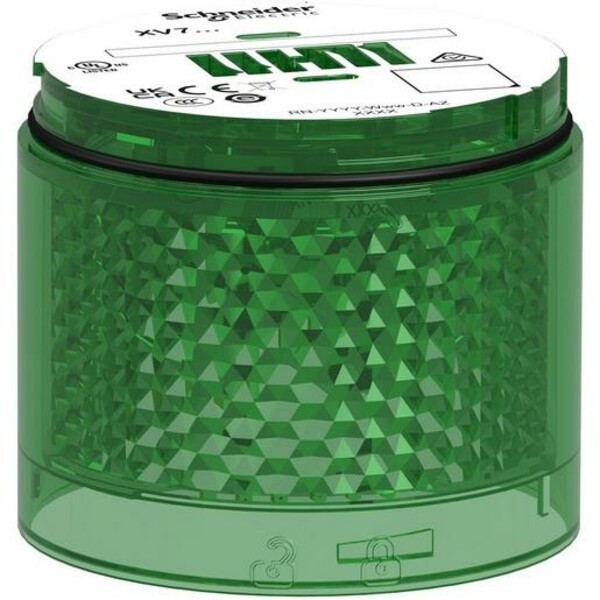Das modulare Leuchtelement aus der Harmony XVB7-Serie überzeugt durch seine energieeffiziente LED-Technologie mit grünen Dauerlicht bei einem Durchmesser von 70 mm. Es ist für eine Betriebsspannung von 24 V AC/DC ausgelegt und bietet eine hohe Lebensdauer von bis zu 50.000 Stunden. Das robuste Gehäuse aus Polykarbonat ist für den Einsatz in anspruchsvollen Industrieumgebungen konzipiert und erfüllt die Schutzart IP66 sowie die Normen UL, IEC und CE. Mit seiner stoß- und vibrationsfesten Bauweise eignet sich das Leuchtelement ideal für den Einsatz in Maschinen- und Anlagensteuerungen. Die Montage ist sowohl aufrecht als auch umgekehrt möglich.